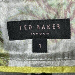 Ted Baker London Pencil Skirt Button Slit Size 1 Gray Lined Side Zip