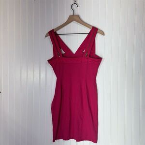 Make a bold statement in this hot pink strappy bodycon mini dress from Ted Baker London. This curve-hugging silhouette features wide double shoulder straps with gold-tone zipper detailing, a structured bustline, and a flattering fitted shape that’s perfect for going out, girls’ night, or a bachelorette party. The fabric has structure and stretch, offering both support and style.