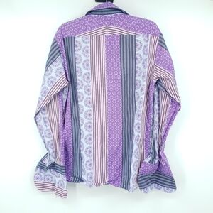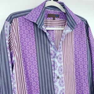 Ted Baker London Purple Striped Mixed Print Collared Button Up Shirt Men's 42