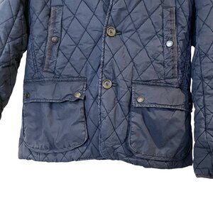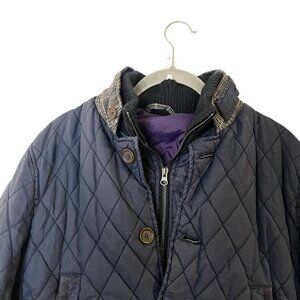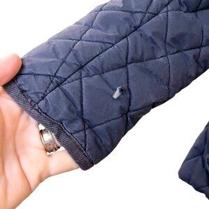 Ted Baker London Quilted Wool Trim Puffer Jacket Navy Blue Equestrian Size 2