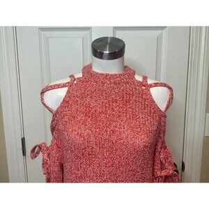 Ted Baker London Red & White Merlina Lace-Up Cold Shoulder Sweater Sz 1 / 4 NWT!
