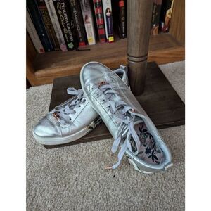 Ted Baker London Roulym Metallic Silver Floral Sneakers Women's Size 9