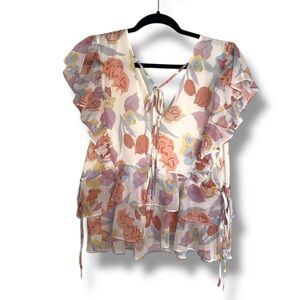 Ted Baker London Rowyn Printed Ruffled Blouse Size Large