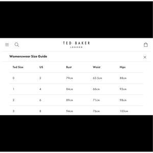 - Ted Baker Size 2; Equivalent to a US Women's Size 6