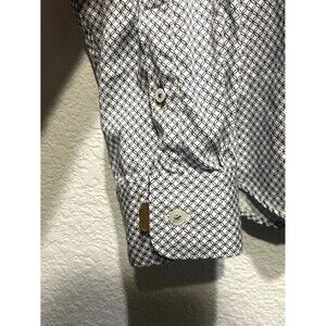 Ted Baker London Shirt Men 7 Black White Geometric Print Cotton Button Up Casual