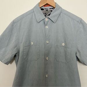 Ted Baker London Shirt Mens Large (4) Light Blue Button Up Short Sleeve Pockets Cotton