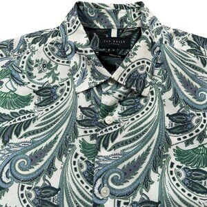 Ted Baker London Shirt Mens Size 3 Medium Short Sleeve Lyocell Paisley Green