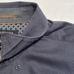 Ted Baker London Shirt Mens Size 5 100% Cotton Button Up Grey Geometric Long Sleeve