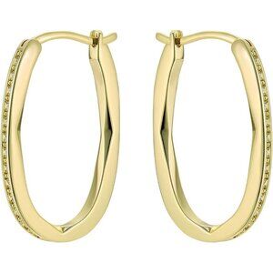 Elegant gold-tone hoop earrings with shimmering crystal accents. Lightweight yet striking, ideal for elevating everyday outfits or complementing formal looks. Arrives in a gift-ready box.