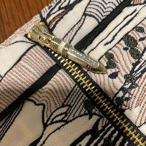 Excellent condition. Lined. Thick tapestry type material. Beautiful embroidered details. 2 metal embellishments.