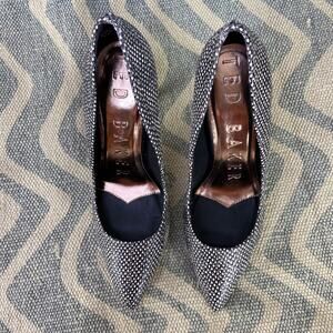 Ted Baker London Snakeskin-Embossed Leather Pumps Size 40.5 Black Ivory Spotted