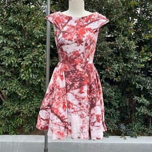 Ted Baker London Strapless Pink Red Cherry Blossom Sleeveless Dress