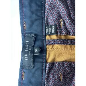 The Ted Baker London Stretch Chino Pant in men's size 34x32 is a versatile and stylish addition to any wardrobe. Made from a comfortable cotton blend material, these tapered brown pants feature a mid-rise fit and a flat front design. They are perfect for various occasions such as travel, weddings, casual outings, and business meetings. With easy care instructions and a regular fit, these chinos are ideal for all seasons, making them a timeless and practical choice for the modern man.