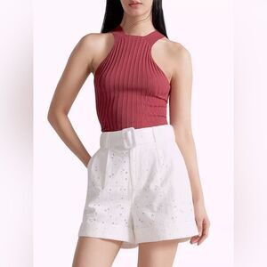 NWOT! Ted Baker London Suzet Tailored Eyelet Lace Belted Mom Shorts in White size 6 (Ted size 2)