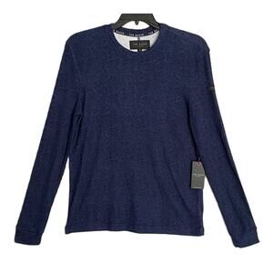 Ted Baker London T-Shirt Men's Small Ribbed Crew Neck Long Slv Navy Heather NEW