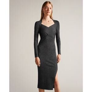 Ted Baker London Tabytha Black and Silver Metallic Bodycon Mini Dress Size 1