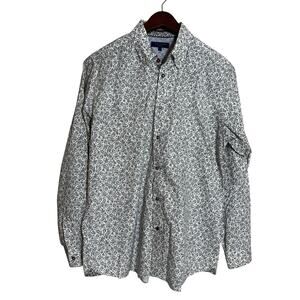 Ted Baker London Tailored Skinny Fit Cream Leaf Print Shirt 16.5 Office Business