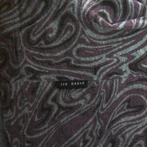 Ted Baker London top, Ted Baker size 4 equivalent to a US 8-10 / medium, pullover, short sleeve, purple & gray swirl with a hint of soft black, contrast stripe pocket, factory super soft washed look (see label photo for texture), 80% poly & 20% cotton, excellent condition!