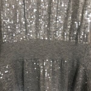 Gray, shiny sequin on back, long waterfall front, band in back, size tag is missing PLEASE see all pictures for approximate measurements,colors may vary due to lighting,good used condition,medium