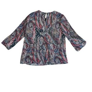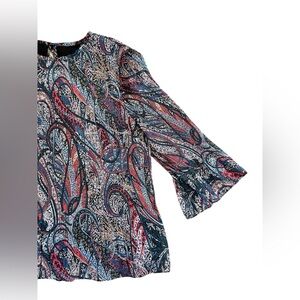 Stylish paisley print blouse. Features flared sleeves. Perfect for casual outings.