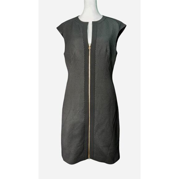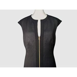 Ted Baker London Womens Black Raid Dress Gold Zip Up Mini, Ted Size 2/US Size 6, textured pattern, zip up front closure, formal dress or evening out