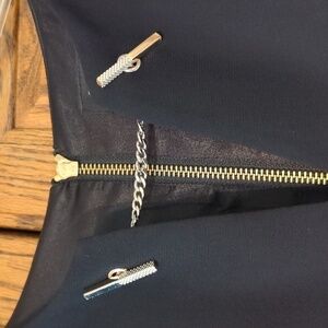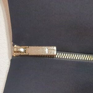 * gold tone exposed zipper in back