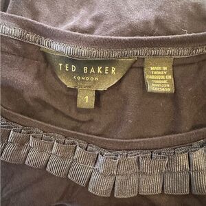 Ted Baker London Women's Navy Blue Tee Shirt with Ribbon Detail Collar Size 1