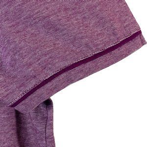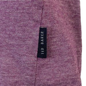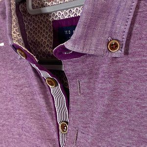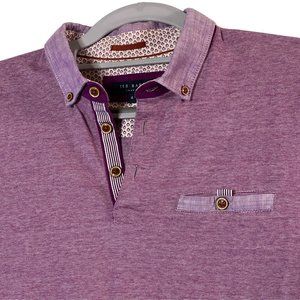 Presenting a stylish Ted Baker London polo shirt in a vibrant purple hue. This regular size M polo is designed for men, offering a neat and sporty look with its no-roll collared neckline and three-button front placket. The shirt is made from a midweight fabric that is stretchy, quick-drying, and moisture-wicking, ensuring you stay comfortable and fresh all day. The solid purple color adds a touch of timeless elegance to your wardrobe. Perfect for casual outings or semi-formal gatherings.