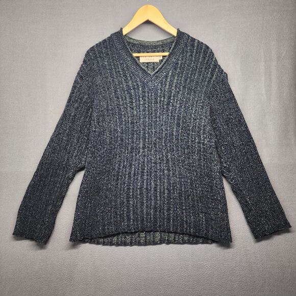 Ted Baker London Womens Sweater Size 3 US Medium Blue V Neck Cotton Blend Ribbed