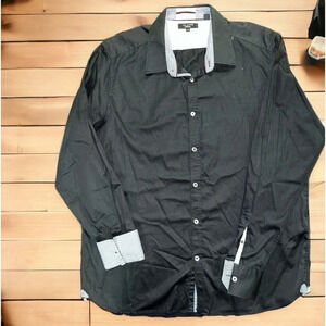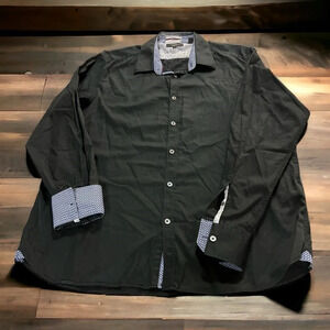 Ted Baker long sleeve dress shirt. Black with blue and white design on sleeves and neck. Button down. Ted size 6 or a 2XL. Excellent condition