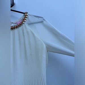 Ted Baker Lovina Bejeweled Accordion Pleated Long Sleeve Blouse Size 3 (US 8)