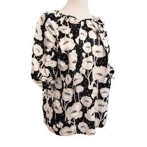 Ted Baker Luciani Puff Sleeve Top Blouse Black Cream Floral 4 (10)