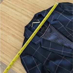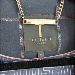 Ted Baker Luunna Navy Checked Single-breasted Blazer Jacket, size 3/M/US 8