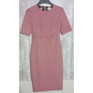 Ted Baker Maggid Ruffle Waist Pencil Dress Pink Coral Classic Full Zip Size 2