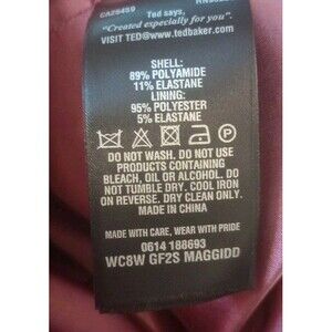 The Ted Bakker Maggid Ruffle Waist Pencil Dress in Pink Coral is a classic and stylish choice for any party or casual occasion. Made from a blend of polyester, elastane, and polyamide, this dress features a solid color, short sleeves, and a full zip closure for easy wear. The ruffle waist accent adds a feminine touch, while the midi length makes it perfect for summer, fall, or spring events. Designed with the signature Ted Baker style, this dress exudes elegance and sophistication, making it a must-have for any woman's wardrobe.