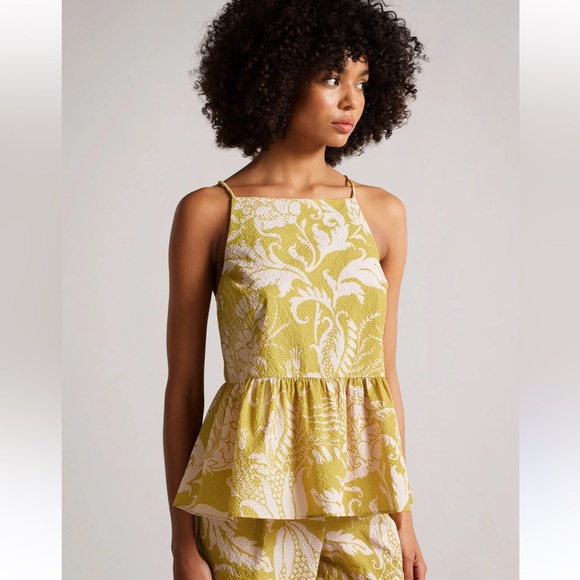 Ted Baker Mahbel Textured Floral Cami Top in Yellow Peplum size 1