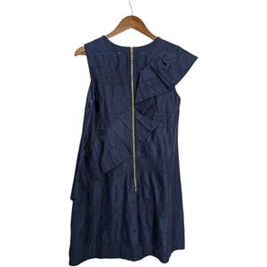 Ted Baker Mahlene Eyelet Embroidered Ruffle Cotton Dress Womens 8 TB 3 Navy Blue Sleeveless