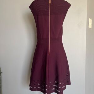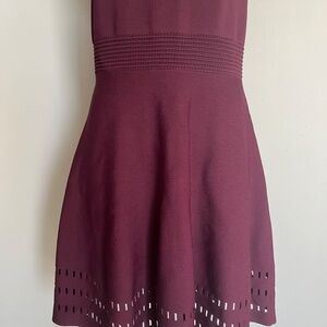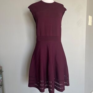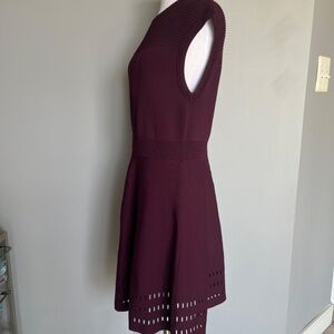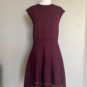 Ted Baker Maroon Aubrey Skater A-line Eyelet Knit Cocktail Burgundy Dress Large