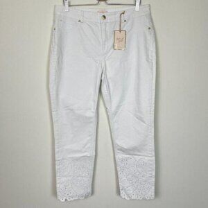 NWT Ted Baker Marriaa Embroidered Hem Classic High Rise Skinny Jeans White Plus Size 34