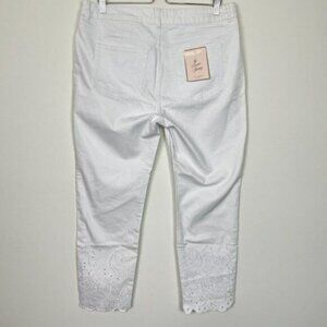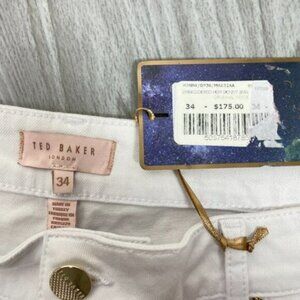 NWT Ted Baker Marriaa Embroidered Hem Classic High Rise Skinny Jeans White Plus Size 34