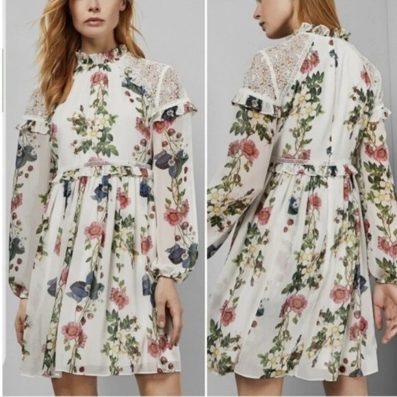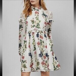 Ted Baker Maryam Ruffle Long Sleeve Dress Sz 0