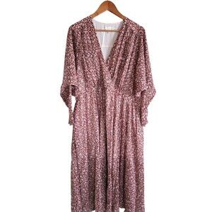 Ted Baker Maxi Dress Women's Size 1 Vallyy Draped Batwing Sleeve Deep Red