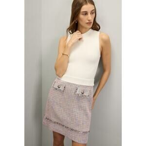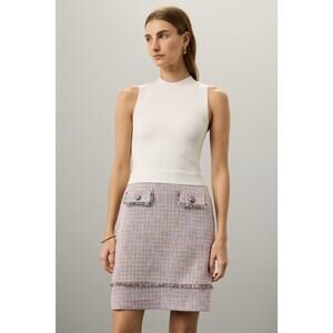 Ted Baker Mayumid Mixed Media Tweed Mock Neck Tank Mini Dress Size