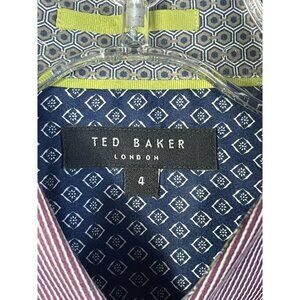 Ted Baker Men's 100% Cotton Burgundy Stripe Long Sleeve Shirt Size 4 Medium
