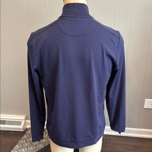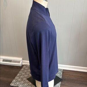 Elegant deep blue sweater with a zip-up design. Perfect for layering. Versatile and stylish.