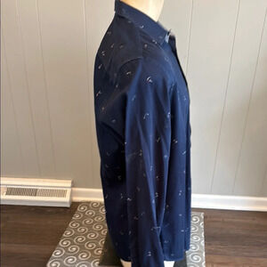 Ted Baker Men’s 6/XXL Blue Casual Button Down Shirt with Subtle Pattern