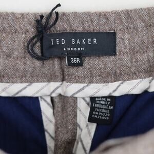 Ted Baker Men's Beige Shuttle Leyden Fit Wool Blend Flannel Trousers Size 36R