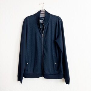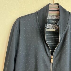 Ted Baker Men's Birdseye Printed Bomber Jacket Navy Blue Full Zip 6 (2XL)
