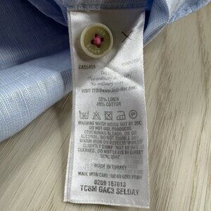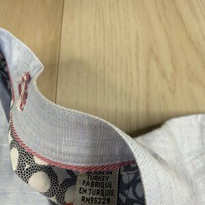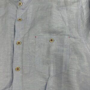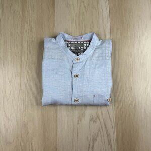 Ted Baker Mens Blue Linen Blend Band Collar Button Up Pocket Preppy Shirt Size 5