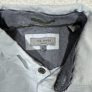 Ted Baker Mens Blue Long Sleeve Collared Pullover Shirt Quarter Button Size XL